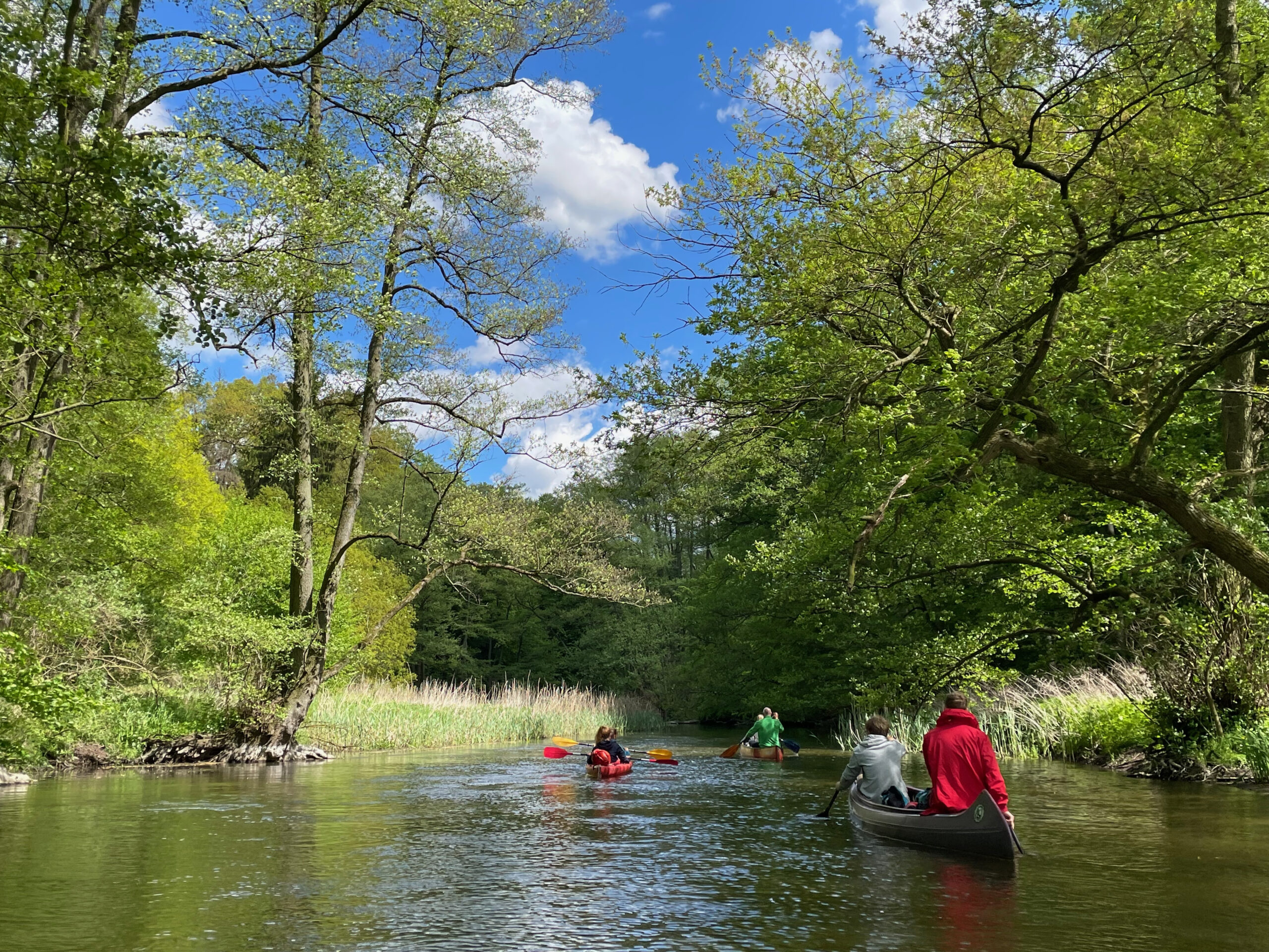 Von Borkow aus gibt es auch bei extremer Trockenheit genügend Wasser für alle unserere Bootstypen zum Paddeln. Lasst euch nicht durch die Pegelangaben im Internet irritieren! Die Angaben zum Pegel Borkow beziehen sich auf das Unterwasser hinter dem Borkower Wehr. Das Oberwasser ist immer befahrbar. In unseren Canadiern hat man durch die angenehm hohe Sitzhaltung immer einen guten Überblick über Wasser- und Uferzonen und kommt auch an den etwas engeren Stellen immer gut durch. Deshalb sind vor allem Kanus/Kanadier (mit Stechpaddel) im Angebot. Wer sich noch nicht so sicher bei diesem Thema fühlt, erhält auf Wunsch eine entsprechende Einführung. Technische Einweisung, Tourenbesprechung und wasserökologische Hinweise gehören zu jeder Vermietung.