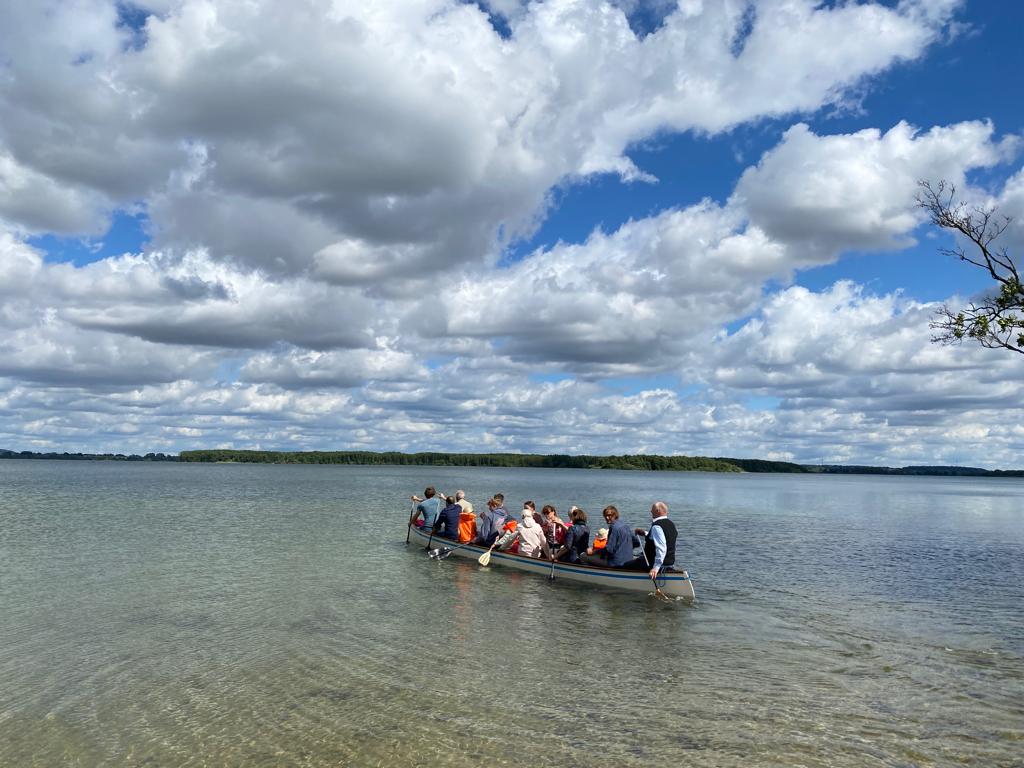 Drachenbootflair kommt bei den großen Mannschaftskanadiern auf, die mit 7 -10 oder gar mit bis zu 18 Paddlern elegant ihre Bahnen durch das Wasser ziehen. Ein Traum für jeden Sportverein mit seinem Team die wunderbare Mildenitzlandschaft zu erkunden. Mannschaftskanadier bieten Gruppen die Gelegenheit, nicht nur den Team- sondern auch den Sportgeist zu stärken. Unsere Mannschaftskanadier können von unserem Kanuverleih aus auch zu anderen Gewässern transportiert werden.